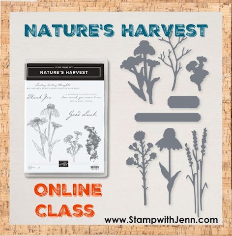 In this class, we will use the beautiful Nature's Harvest bundle and accessories to create 5 gorgeous cards designs. In addition, you will learn learn some techniques with watercolour pencils and masking. Best of all, all class videos will be pre-recorded so you can access anytime and at your own pace. See below for more details.